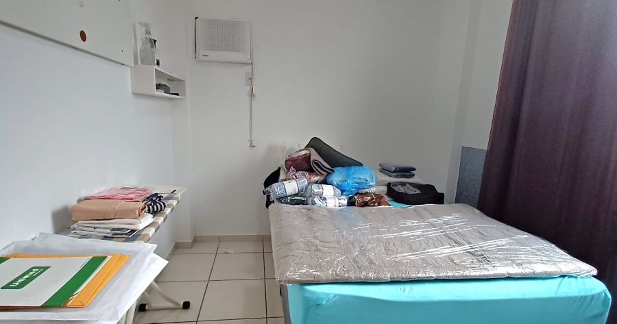 Sofá, rack, mesa, geladeira, camas, armários planejados, ar-condicionado e diversos outros itens.